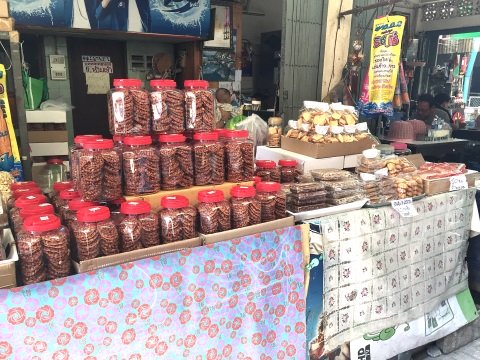 Wiset Chai Chan – a brief history Mueang Wiset Chai Chan or Wiset Chai Chan City was in existence since the Ayutthaya days though records don’t specify exactly when the city was founded. Located on the banks of the Noi River*, it’s 33 km north-west of Ayutthaya and serves as a frontier outpost covering the northern approaches to Ayutthaya against any Burmese incursions. *The Noi River starts from Chai Nat and winds past Singburi, Ang Thong, and rejoins the Chao Phraya at Bang Sai, Ayutthaya ![]() Noi River at Wiset Chai Chan In 1765, when the Burmese started their offensive against Ayutthaya, Wiset Chai Chan was overrun and occupied. Many of the warriors withdrew north to an encampment called Bang Rachan where they joined others in a heroic last stand against the Burmese. That battle goes down in the annals of Thai history as one of supreme heroism and sacrifice. We will be covering this battle next month. Later during the Thonburi era in the late 18th C, a new city was established on the banks of the Chao Phraya River 12 km east of Wiset Chai Chan. As the area was in a fertile river basin, the new city was named Ang Thong or Golden Basin. Today Ang Thong City is the centre of a fertile rice growing, milling and exporting region. The old Wiset Chai Chan is now a district in Ang Thong Province. ![]() Rice field in Ang Thong Contents San Chao Rong Thong Market San Chao Rong Thong is an old Chinese community that migrated to Wiset Chai Chan around the 19th C. They started their community on the banks of the Noi River and in the tradition of the Chinese migrants became traders selling various types of food, fruits, vegetables and other goods. From this Chinese community grew the San Chao Rong Thong Market which specialises in delectable Thai cakes, deserts and snacks. ![]() Entrance to the market We walked down the narrow alleys lined with shops on both sides. In communities like these, the traders live above the shops where they sell their wares like many Chinese communities overseas. ![]() Alley leading into the market Here’s a sample of some of the goodies sold here. ![]() Sample of some of the snacks This was the first stall we stopped at and this lady sportingly allowed us to take her photo and what she had on sale in her stall. ![]() The friendly face of San Chao Rong Thong ![]() ![]() We stopped at a second shop and this lady was nice enough to invite us into her kitchen to show us the preparation of her cakes. Her shop takes orders for such cakes for gifts during festive seasons. ![]() ![]() ![]() Preparation of kanom thong yip ![]() ![]() Some of her colourful snacks and her shop ![]() In the heart of the market Though San Chao Rong Thong market is famous for its cakes and deserts, other goods are sold here too; like hardware items, farm tools, fresh orchids, garlands, salted fish and chunks of raw pork. ![]() Hardware shop selling sickles for harvesting rice ![]() ![]() ![]() Another colourful array of cakes and sweets After the first row of shops, I noticed a sharp difference with the rest of the buildings; the houses were different, many were closed and there didn’t seem to be any life there. ![]() A different atmosphere It was then that I found out from the lady who owns the cake shop, that a big fire burnt down a large portion of the San Chao Rong Thong community many years ago. As we walked to the river we passed more shops that were closed. Some appeared newly renovated but remained closed. ![]() Closed There’s a small neat park just before the river but there was hardly anyone there. Barges moored by the river appear to be the dining area in what used to be a floating market. ![]() Park and moored barges The second section of San Chao Rong Thong was in strange contrast to the busy and bustling front section. Contents Tragedy at Dawn It was in this latter section that we found out more about this community. These old pictures, hung from the walls of a wooden house that is the home of the community leader, tell the story. Early on the morning of 6 December 2005 at about 3:00 am a huge fire broke out in San Chao Rong Thong. The damage was devastating; almost half the wooden buildings in the community were completely destroyed! ![]() ![]() The fire and its aftermath From the information on these display boards, the community apparently is more than 150 years old. It was originally called by another name, Ban Pai Cham Sin. Later a prominent member of the community who was a Chinese immigrant built a beautiful shrine here using earth that had a golden hue. Many people came to worship at this shrine and in 1877 the name of the community was changed to San Chao Rong Thong (san chao – shrine, rong thong – gold) . The date of change in name for the community 1877, shows that the community started before this date. There is no record as to when exactly it started. These old photos show what the community was like back then. ![]() Life back then Across from this house is another wooden hut that displays a collection of old items and photographs. ![]() Old items on display in the museum ![]() These old photos were taken in 1974 Contents Kuan Yu Shrine Now to our final destination in our tour of the San Chao Rong Thong community and market, the Kuan Yu Shrine. It’s a beautiful shrine overlooking the Noi River dedicated to the Chinese deity Kuan Yu. ![]() Kuan Yu Shrine An elderly lady was seated near the shrine and told us to proceed upstairs. She gave a call and within five minutes a young man appeared to guide us around the shrine. Aou the young man was born and grew up in San Chao Rong Thong. Like many of the residents here, he is in the third or fourth generation. During the weekends, he performs a service to his community and volunteers as a guide to the Kuan Yu Shrine as the regular person is off. In the previous section, it was stated that the community was named after a shrine, but the information didn’t specify which shrine. It’s most likely this Kuan Yu Shr