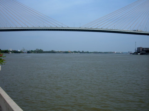 The stretch of the Chao Phraya between the Samut Prakarn city forts (buildings in the distance) and Fort Phi Suea Samut (the tip of the island on the left) Fort Phra Chulachomklao At the river mouth, stood the newest fort, Fort Phra Chulachomklao, which took 9 years to build and was completed on 10 April 1893.
