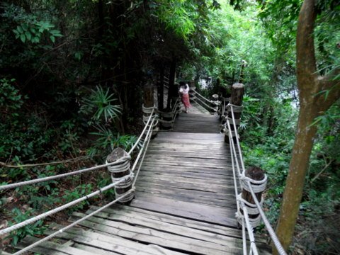 The first encounter Next, walk down this wooden staircase to the Sanctuary of Truth below, hold on to the guide rope and mind your step.
