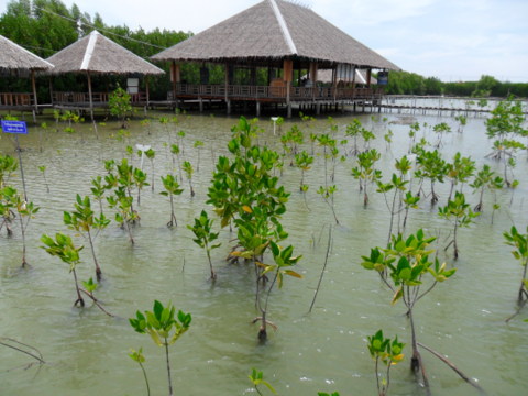 Instead the coast has mangrove preserving the ecological system in a low-lying area of about 1 – 1.5 m above sea level, 15 km to the west of the Chao Phraya estuary.