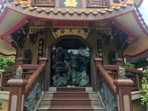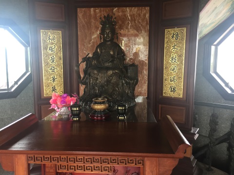 Besides the displays on the second floor, there is an ornately decorated door leading to a room. I didn’t know then that the board above the door translates to “Temple for seeking entrance to heaven”.