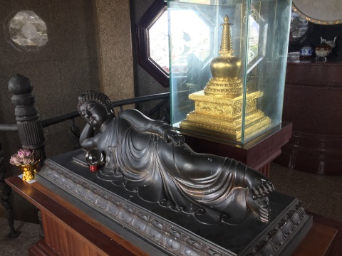 Walk around the temple to the rear where there is a pedestrian bridge crossing to the new building. The new building, which was opened on 13 June 2018, consists of a display area on the second floor, a prayer room on the third and the fourth floor opens to a courtyard.