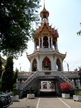 The ferry took us across the Chao Phraya River to a temple built in 1825 by Chao Phraya¹ Nikorn Bodin² (Toh Kalayanamit³) a nobleman who lived in the area called Kudi Chin. He donated his land and bought additional land in the area to construct this temple.