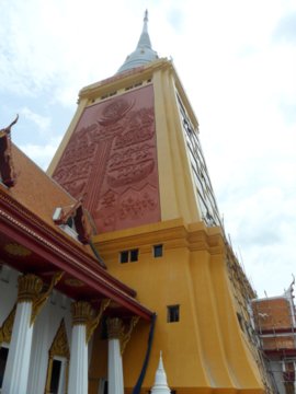 Of the three, Wat Thammongkol is the most prominent. The chedi here is the highest in Thailand, 94.74 m with 14 storeys. The Phra Khanong Museum is on the third level. The 4th – 10th storeys are a school for monks and above that the temple museum.