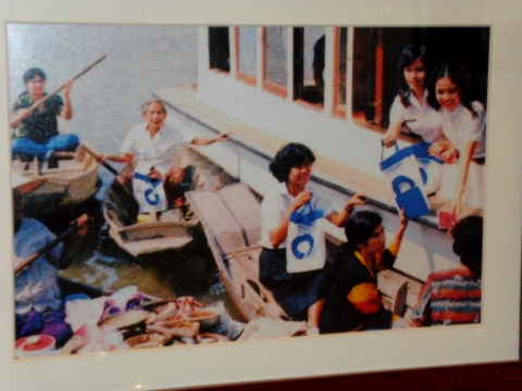 Riverside residents who were bank customers were given blue flags with the white Savings Bank logo. If they required banking services on any particular day, they would place the flag in front of their homes so that the Savings Bank boat would stop by.
