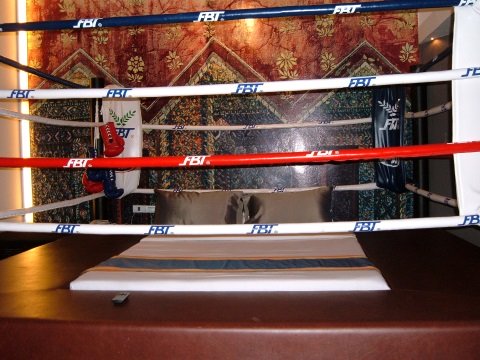 For those who fancy a scuffle before bed, there's the Muay Thai room with a bed in a life-sized Thai kick-boxing ring, complete with real boxing gloves, bell, punching bag and murals of Thai boxers.