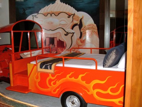 Still want more adventure, then try the bed on a modified fiery red "tuk tuk", the ubiquitous three-wheeler plying the Bangkok roads.